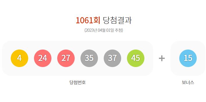 1061회 로또 1등 11명 각 24억2000만원 당첨번호 4 24 27 35 37 45 매일경제